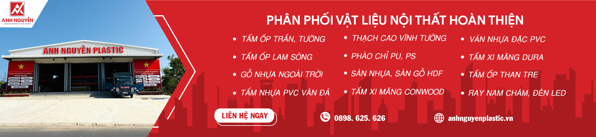 Phát triển trong lĩnh vực cung ứng vật liệu về trang trí nội ngoại thất hoàn thiện từ giải pháp nhựa hoàn thiện, giải pháp gỗ nội thất,… Anh Nguyễn luôn hướng đến những sản phẩm chất lượng cao với ứng dụng đa dạng giúp bạn tạo không gian nội ngoại thất đẹp và tiện dụng.